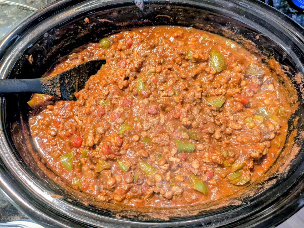 - Note that this recipe is intended for meal prep, as it finishes at 10pm, at not meant to be eaten fresh that night for dinner. If you would like to have the chili fresh, then you would need to split the process into another day. Just start the beans whenever in the morning. 8 hours later, when the beans are done, cover the pot with a lid, and refrigerate until the next day. In the morning, you can put together the rest of the chili, and get it on the slow cooker around 10:30am if you're aiming for a 6:30pm dinner