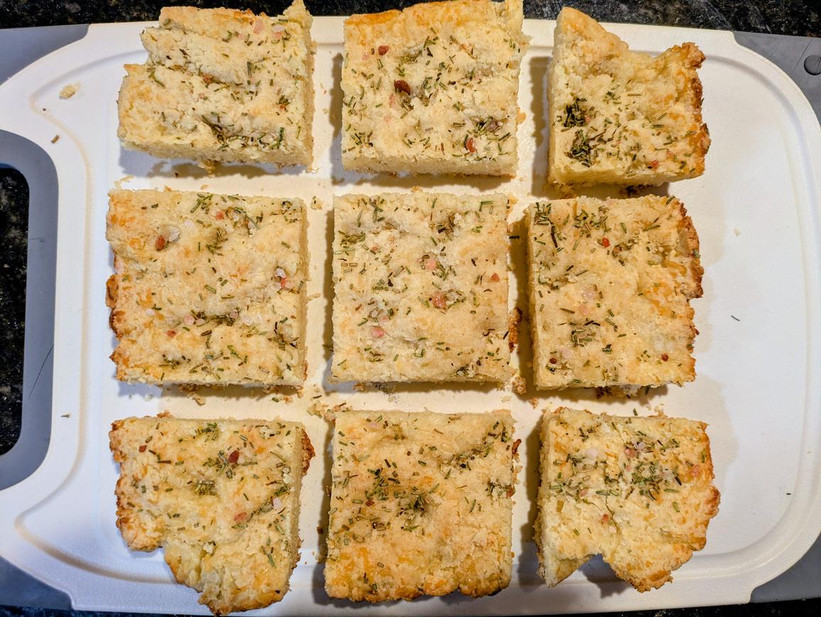 This gluten free almond flour focaccia bread is high in healthy fats and low in net carbs. Featuring almond flour instead of white flour, this bread is a good source of healthy fats, fiber, and vitamin E, all with only 3 g of net carbs per slice. It's simple to put together, and contains no added oil, unlike most focaccia recipes