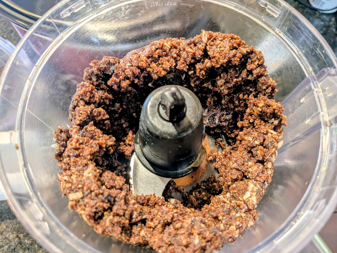 - Blend your nuts in a food processor for about 30 seconds, or until you have a coarse crumb