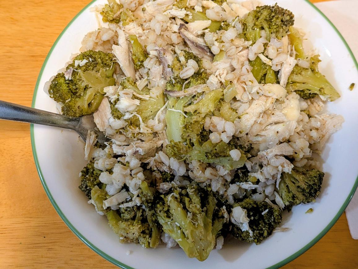 - I like using this formula to make different variations of grain bowls. Below, I combined together barley, broccoli, shreddd chicken, and blue cheese