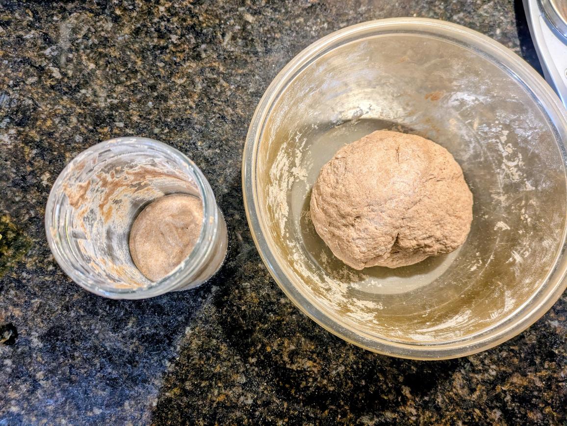 Feed your sourdough starter again, saving the discard, and let it rest on the counter for an hour with a loose lid.