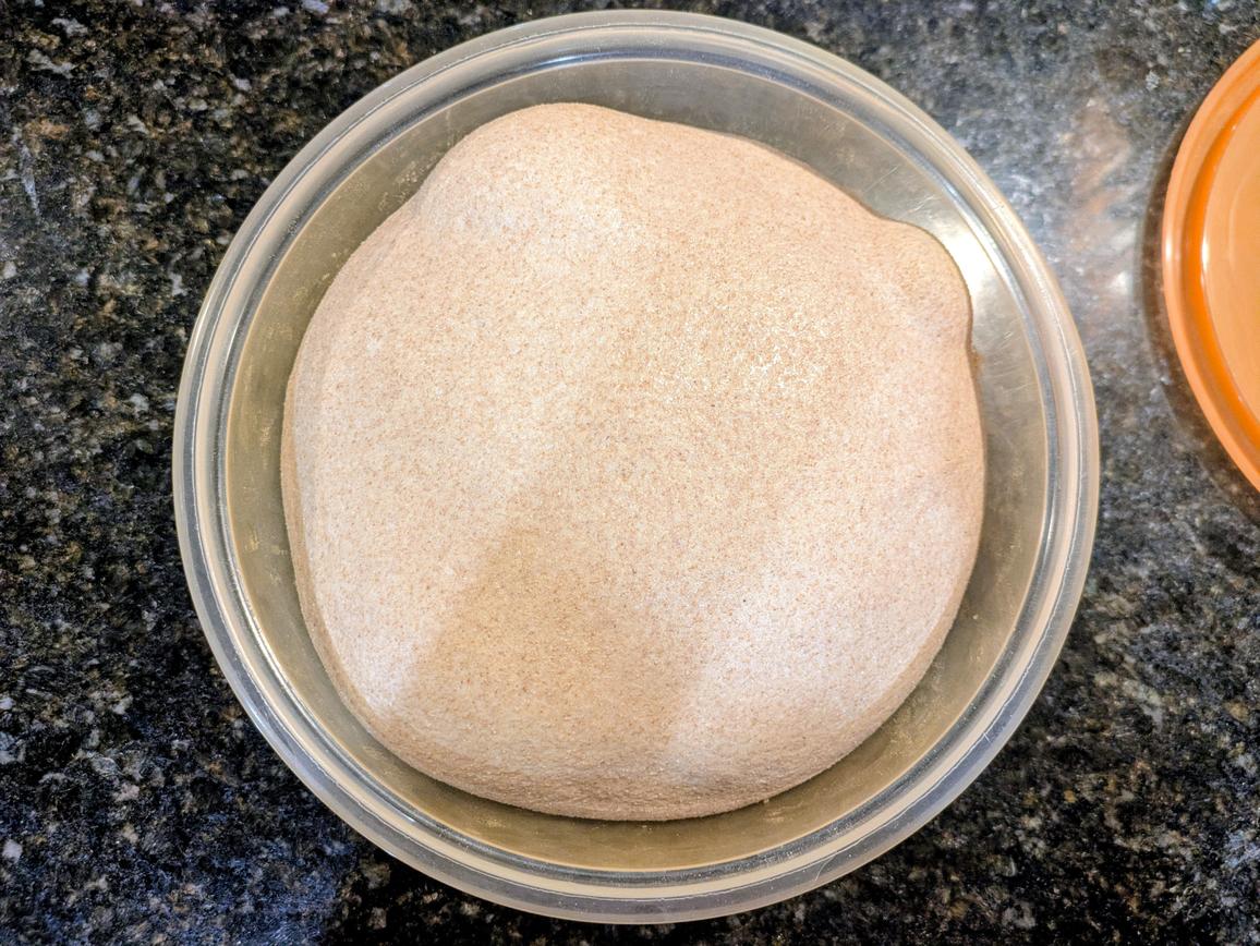 Cover your bowl, and let the dough ferment in a warm place. I will place the dough in the microwave, and let it rest for about 8 hours. It should have roughly doubled in size.