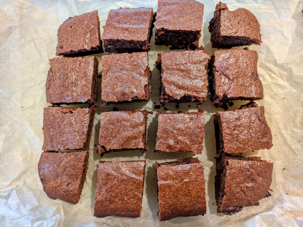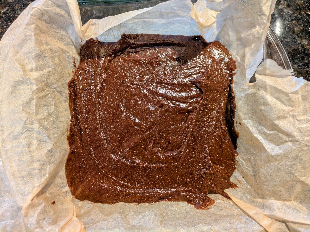- Preheat your oven to 350F. Line a 9" square pan with parchment paper, and lightly grease with oil