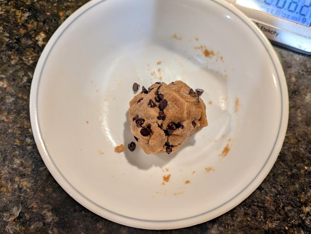 - Mix together nut butter, sweetener, and vanilla extract until smooth and you have a cookie dough texture. Fold in 2/3 (10 g) of your chocolate chips