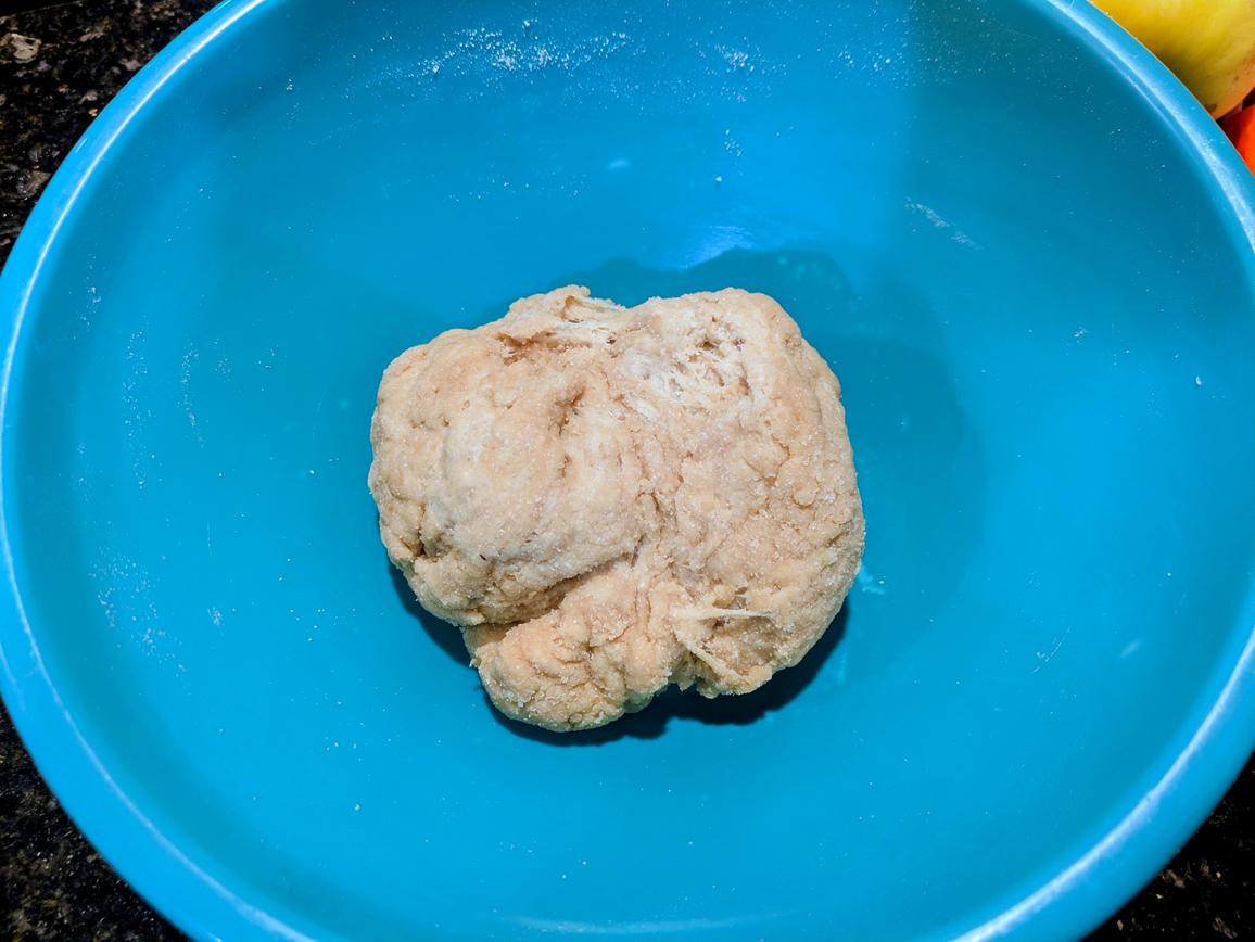 - Add in the vinegar and warm water, and bring together with a dough scraper. Let the dough rest for 5 minutes