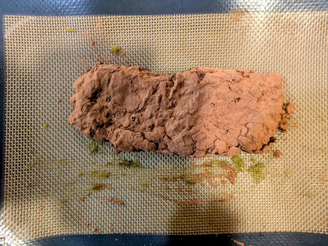 - Line a plate with parchment paper. Using kitchen gloves (it's very sticky; you'll need them), shape the mixture into a rectangle. Freeze for 1 hour to harden