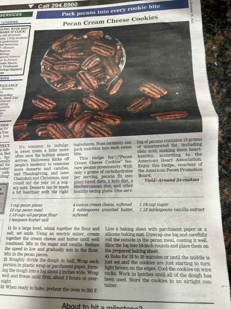 - Using a food processor, pulse 1 cup (128 g) pecans a few times, until roughly chopped, and set aside. With the remaining 1/2 cup (64 g), blend until you have a fine crumb. The former (roughly chopped pecans) will be folded into the cookie dough, whereas the latter (pecan meal) will be used for rolling prior to baking