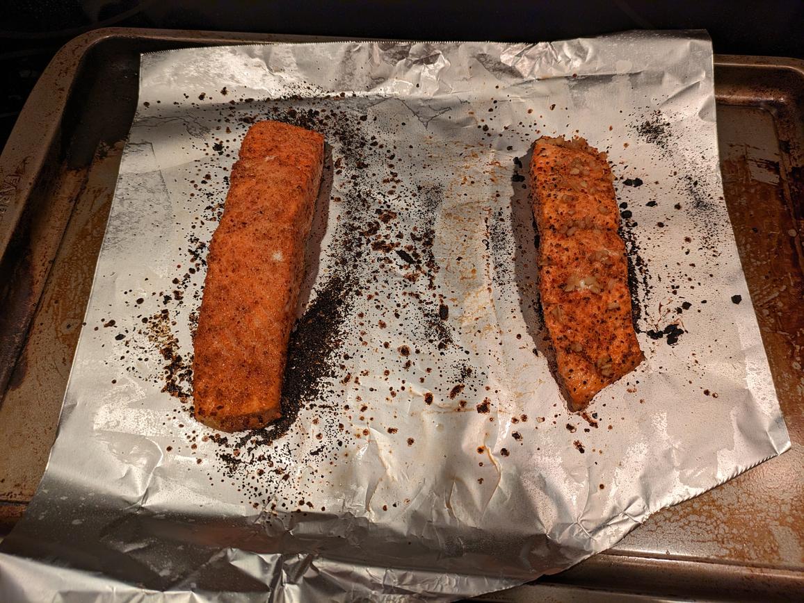 Salmon is my preferred fish, but I don't tend to have it too often because it's fairly expensive. I always pick it up when on sale though, because it's a fantastic source of Omega-3s. These simply baked fillets are made in just a few minutes, and pair great with a crunchy salad, consisting of seasoned raw peppers, onions, and tomatoes.