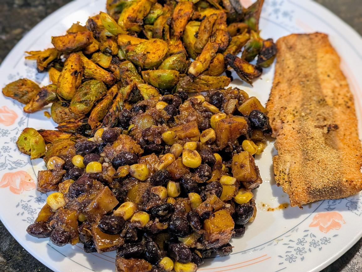 - Finally, combine all 3 sisters together in a large bowl, and serve. Here I'm pairing the sisters with some roasted brussel sprouts and salmon
