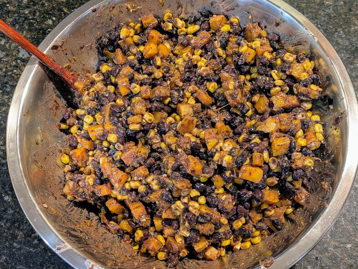 - With about an hour left on the beans, you can prepare the squash. Preheat your oven to 400F, and line a large cookie sheet with parchment paper. Peel your squash, cut into a small dice, and add to the tray. Season with oil, minced garlic, garlic powder, onion powder, black pepper, and salt. Roast at 400F until fork tender and lightly browned, about 30 minutes